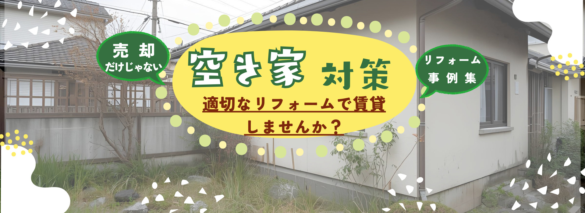 貸家にするためのリフォーム提案、借り手の募集、貸した後の管理対応、それら諸問題のご不安についても、しっかりとお手伝いさせていただきます。